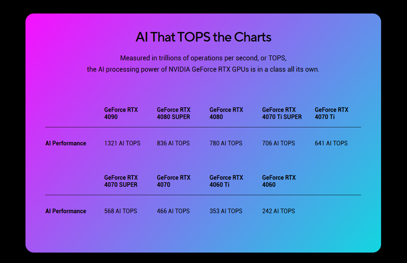 every RTX GPU. From studying to working to entertainment, RTX-powered AI delivers the most